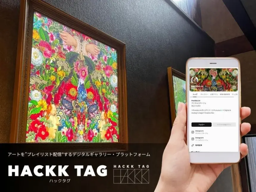 IDEABLE WORKSが展開する「HACKK TAG」は、プロからアマチュアまで、すべてのアーティストの表現機会を最大化させることを目指す、リアルとデジタルを融合したアート専用デジタル額縁を活用した壁面ギャラリープラットフォームです。