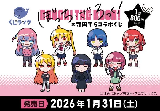 カルチュア・エンタテインメント株式会社は、人気アニメ「ぼっち・ざ・ろっく!」とイラストレーター寺田てらさんのコラボレーションによる、はずれなしのリアルくじ「くじラック」を2026年1月31日(土)より順次発売することを発表しました。このくじでは、寺田てらさんが特別に描き起こした新規イラストを使用したアイテムが多数登場します。