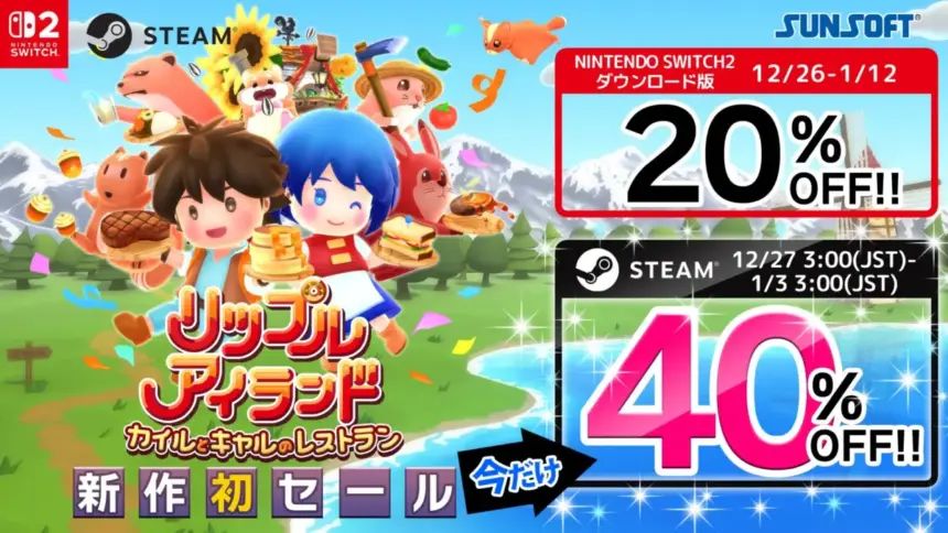 最大16人協力プレイ『リップルアイランド カイルとキャルのレストラン』が年末年始セールで最大40%OFF!