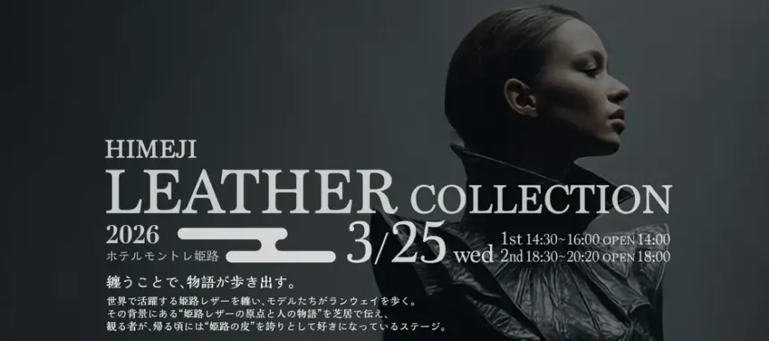姫路皮革製品推進協議会が主催するこのイベントは、長年培ってきた技術や思想を、単なる展示や販売に留まらず、映像、芝居、ランウェイが連続する総合舞台表現として立ち上げる、新たな試みです。昼・夜の二部構成で実施され、姫路レザーを「素材」としてだけでなく、「文化」「体験」「価値」として体感できる場が創出されます。