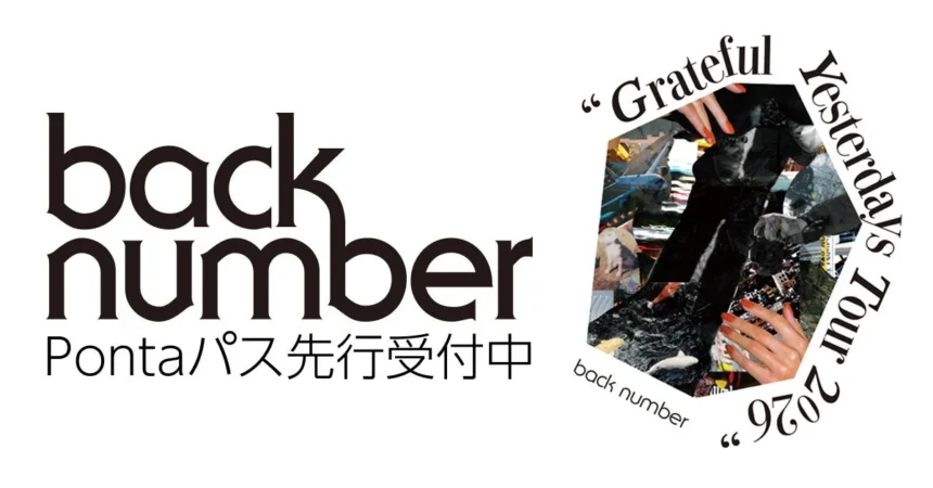 「back number “Grateful Yesterdays Tour 2026”」は、2026年5月から全国5カ所9公演で開催されます。Pontaパス(月額548円)会員は、一般受付に先駆けてチケットを申し込むことが可能です。