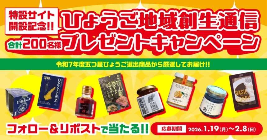 特設サイトの開設を記念し、兵庫県の特産品「五つ星ひょうご」が当たるプレゼントキャンペーンが実施されています。このキャンペーンは、兵庫県地域創生公式X(旧Twitter)アカウント「@love_hyogo_01」を活用して行われます。