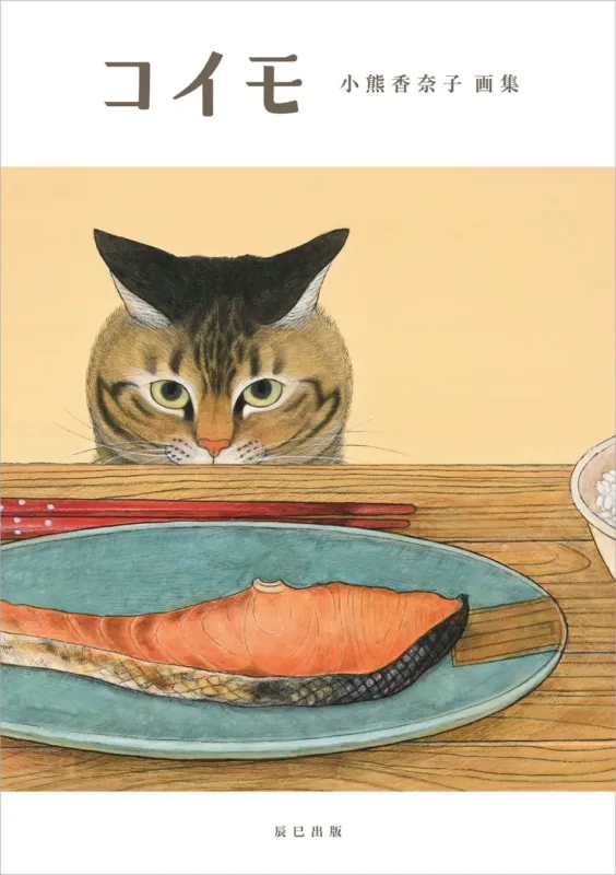 本画集には作品のほかにも、小熊さんへのインタビュー(雑誌『猫びより』2025年春号より再録)や、花や魚、野菜や果物などのスケッチ、そしてコイモのスナップ写真も収録されています。小熊さんが創作をするかたわらでのびのびと振る舞うコイモの姿は、創作を見守り、ときに邪魔をする様子から、猫と暮らす楽しさと幸福を伝えてくれます。