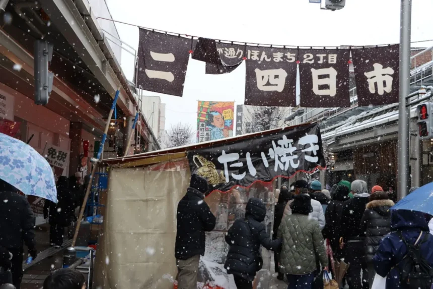 昔から「天候が荒れる」と言い伝えられている通り、開催当日は大雪警報が発令される厳しい天候に見舞われました。しかし、雪が舞う中でも地元住民や外国人観光客が買い物を楽しむ姿が多く見られ、高山市観光課によると、約40,000人もの人々がこの伝統ある市を訪れたとのことです。悪天候にもかかわらず、多くの人々が飛騨高山の冬の風物詩を満喫しました。