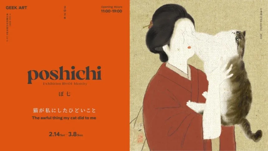 2026年2月14日(土)から3月8日(日)まで、渋谷のGalerie GEEK/ARTにて、イラスト作家poshichi(ぽ七)氏によるイラスト展「猫が私にしたひどいこと」が開催されます。本展では、SNSを中心に多くのファンを魅了するposhichi氏が描く、猫との愛おしくもクスッと笑える日常の一幕が紹介されます。