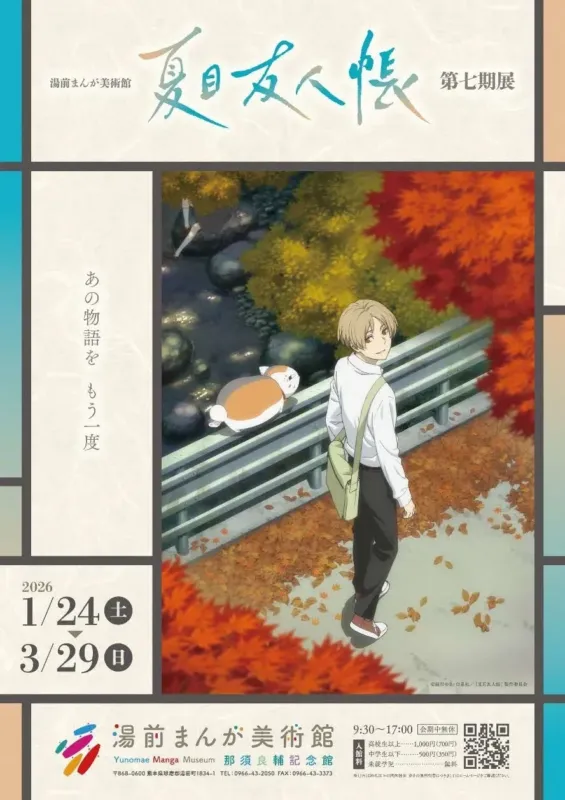 熊本県出身の漫画家・緑川ゆき氏が手掛ける人気アニメ「夏目友人帳」の第七期展が、2026年1月24日(土)から3月29日(日)までの期間限定で、熊本県湯前町の「湯前まんが美術館」にて開催されています。