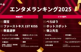 2. 2025年エンタメ決定版!noteが発表する映画・ドラマランキングTOP20、映画は『国宝』、ドラマは『べらぼう』が首位に