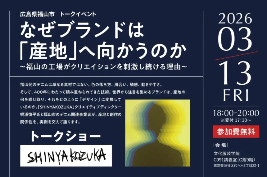 SHINYAKOZUKA×広島県福山市、デニム産地の価値とクリエイションを探るトークイベント開催
