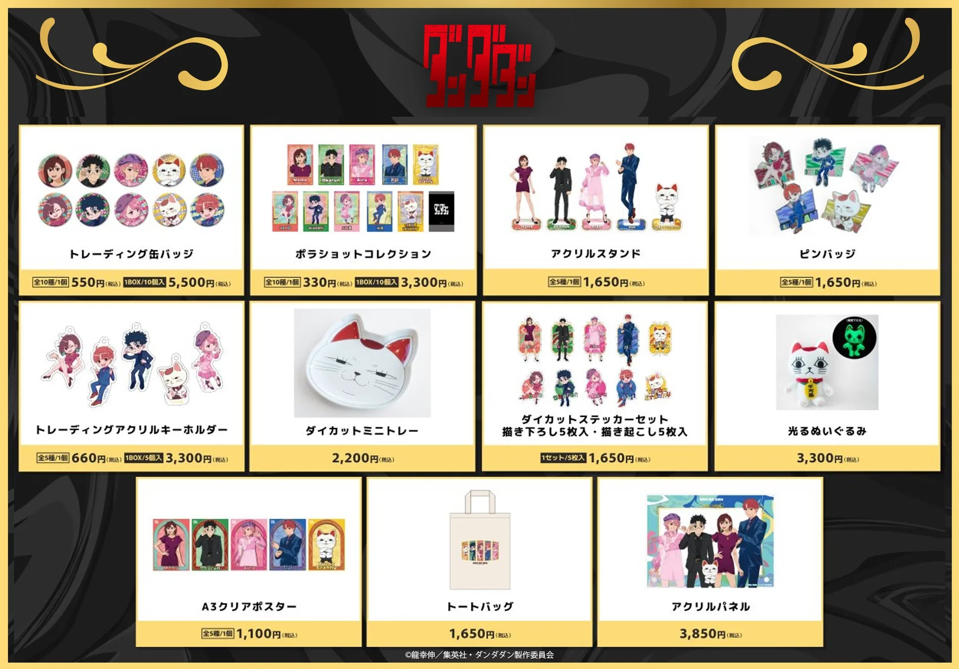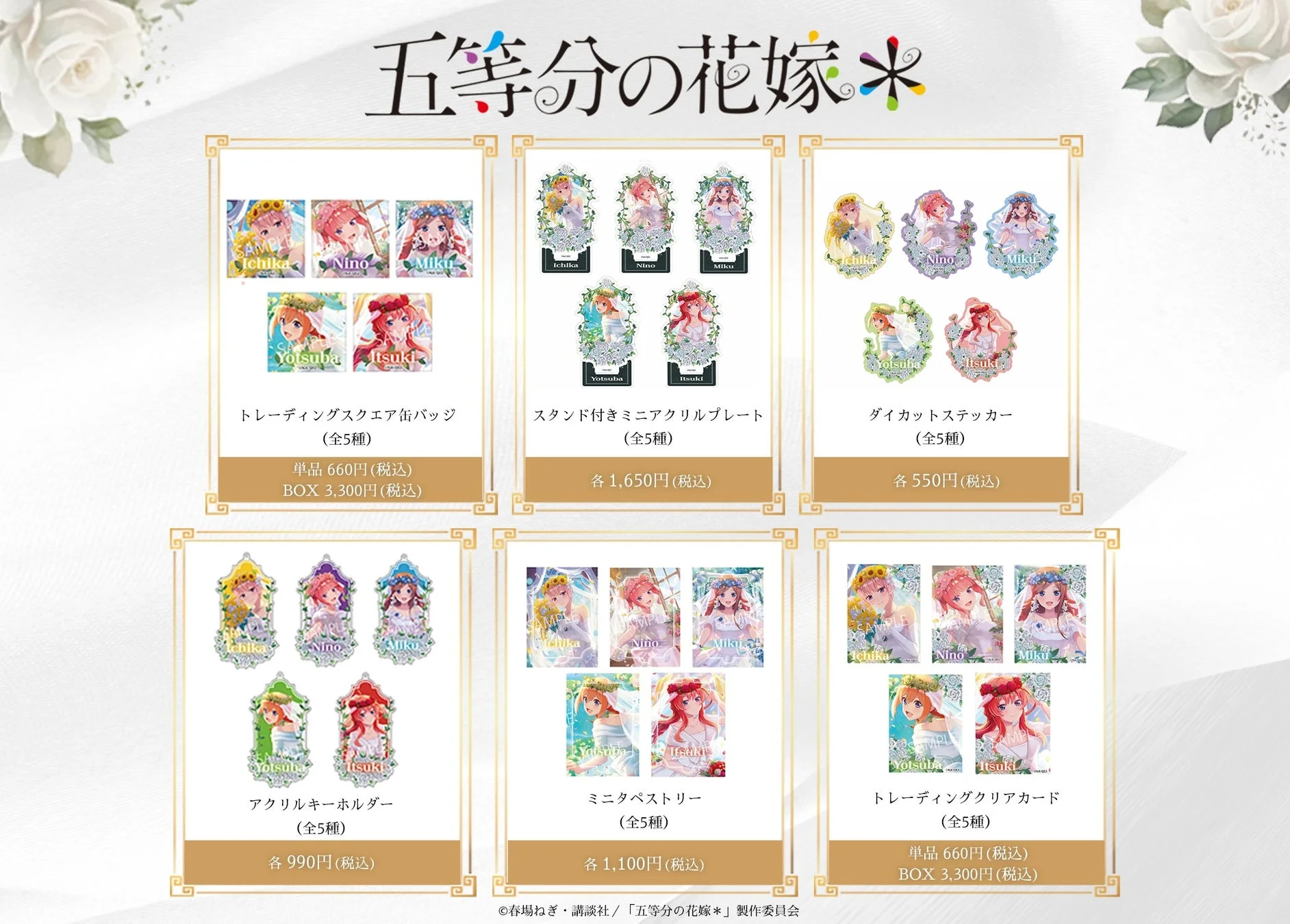 フェアでは、DeNAが企画・開発した多種多様なグッズが販売されます。対象となるのは、TVスペシャルアニメ『五等分の花嫁*』、TVアニメ『SAKAMOTO DAYS』、TVアニメ『3年Z組銀八先生』、TVアニメ『SPY×FAMILY』、TVアニメ『ダンダダン』、TVアニメ『東京リベンジャーズ』、TVアニメ『Dr.STONE』、TVアニメ『NARUTO-ナルト- 疾風伝』の8作品です。