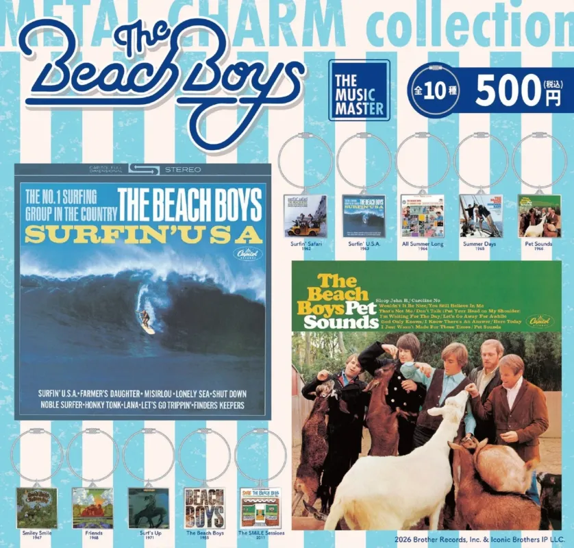 今回発売されるカプセルトイは、「The Beach Boys」の厳選されたアルバムジャケットアートワークを基にデザインされたメタルチャームです。キーホルダーと共にカプセル内に収納されており、ファンの方々にとってコレクションに最適なアイテムとなっています。