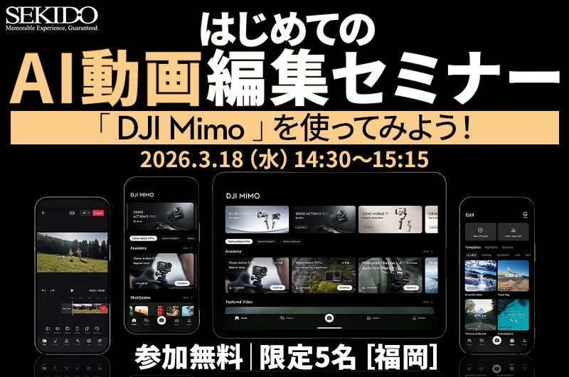 株式会社セキドと株式会社レイメイセキドは共催で、2026年3月18日(水)に福岡市にて、動画編集初心者向けの無料セミナー「はじめてのAI動画編集セミナー『DJI Mimo』を使ってみよう!」を開催します。