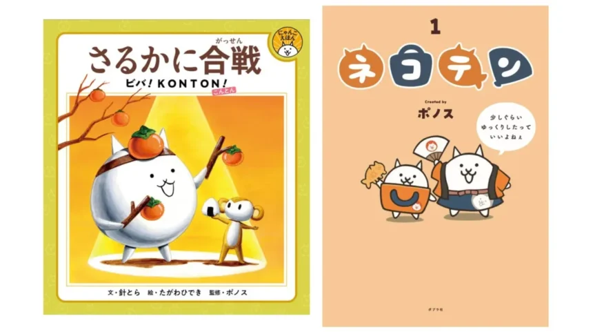 スマートフォンアプリ『にゃんこ大戦争』に登場する「さるかに合戦」を主人公とした、初の描き下ろし絵本です。作は針とら氏、絵はたがわひでき氏、監修はポノスが担当しています。