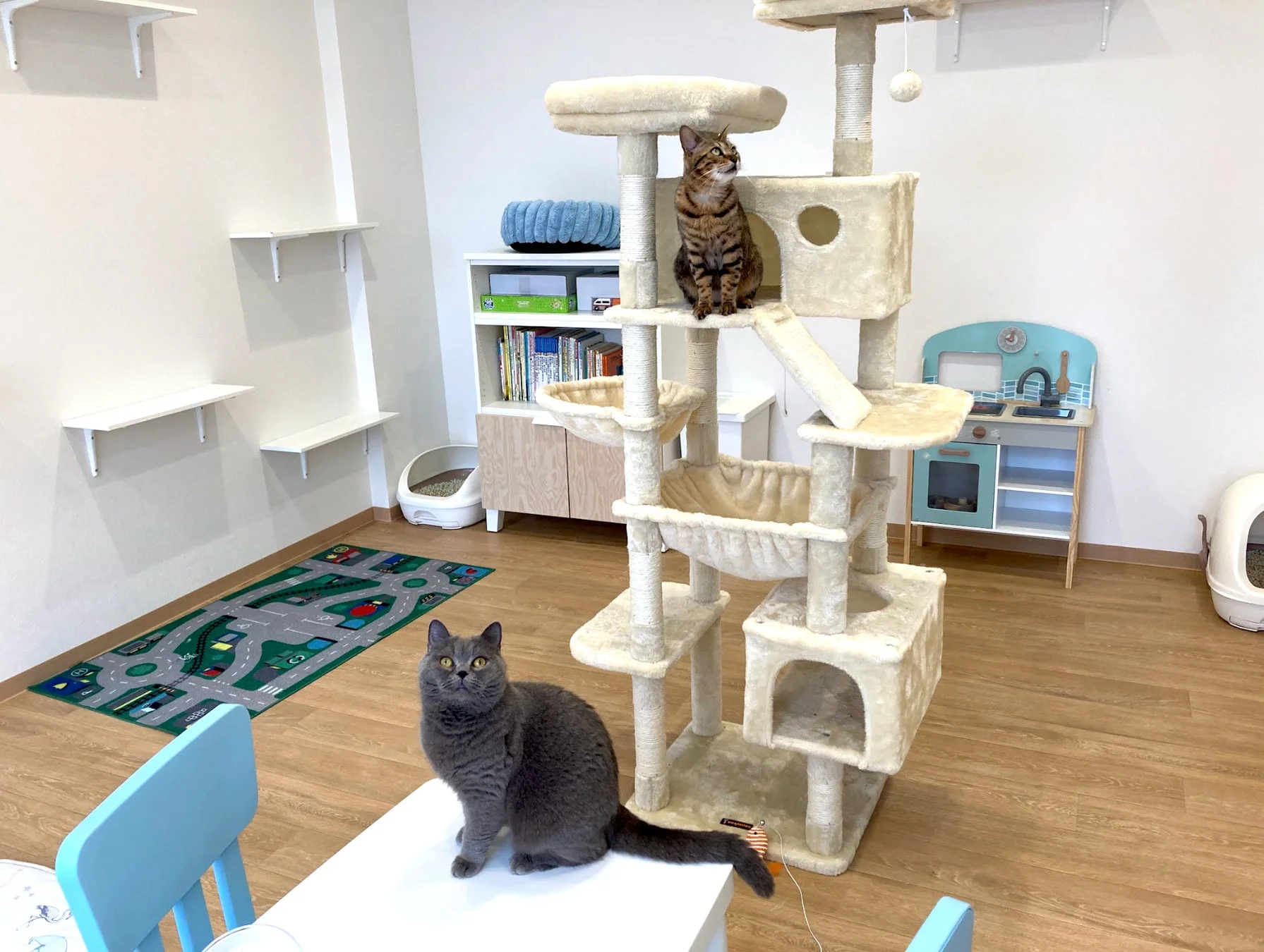 水色を基調としたクラシックハワイアンをイメージしたこのカフェでは、可愛らしい保護犬猫たちと触れ合い、癒やしの時間を過ごすことができます。触れ合いを通じて気になる犬猫がいれば、家族として迎え入れることも可能です。この店舗は、地域の皆さまの日常の中で、保護犬猫との出会いをより身近なものにすることを目指しています。