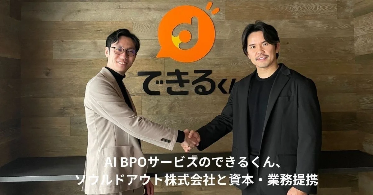 AI BPOサービスのできるくん、ソウルドアウト株式会社と資本・業務提携を締結 〜中小企業のデジタルマーケティングを加速する「LPできるくん」を提供開始〜
