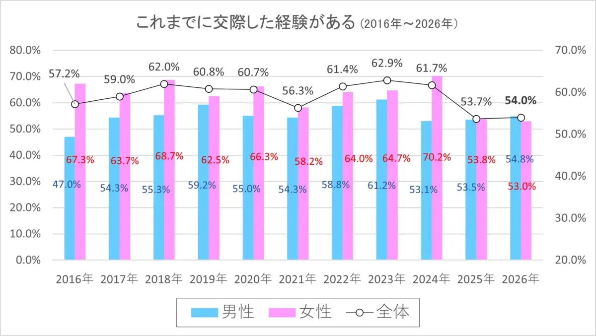 2026年新成人の恋愛・結婚意識調査:恋愛意欲が回復、交際への積極性が過去10年で最高水準に