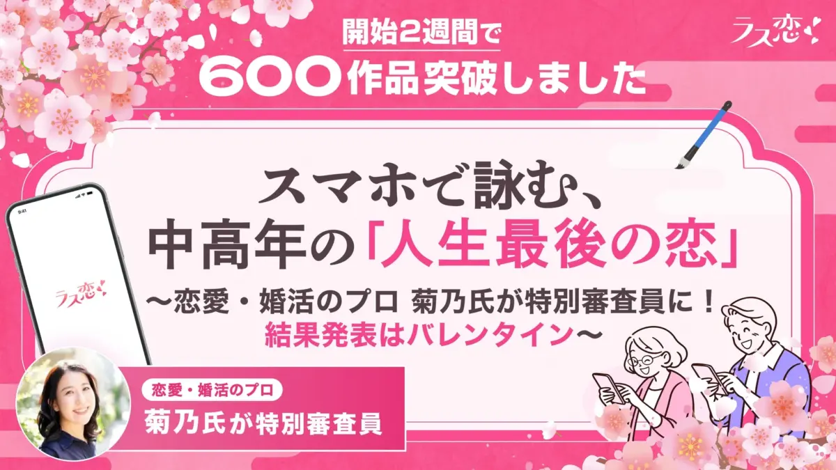 中高年の「人生最後の恋」を詠む「ラス恋川柳」、開始2週間で600作品突破!特別審査員に菊乃氏を迎え、バレンタインに結果発表