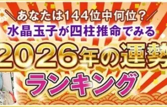 雑誌・テレビで話題の占い師・水晶玉子が占う2026年の運勢ランキングを無料公…