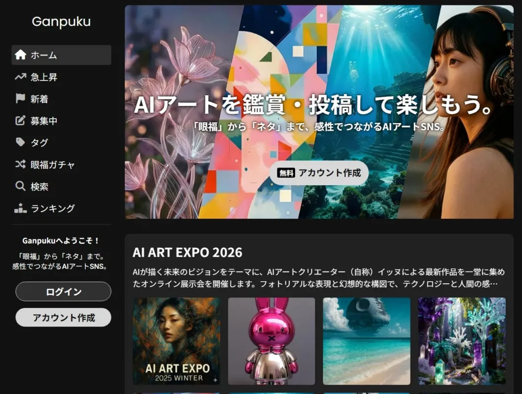 AIアート鑑賞・投稿SNS『Ganpuku』がオープンβテストを開始
