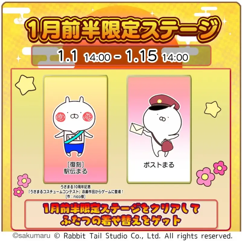 「うさまるキッチン」1月前半限定ステージ開催!復刻「駅伝まる」と新規「ポストまる」の着せ替えが登場