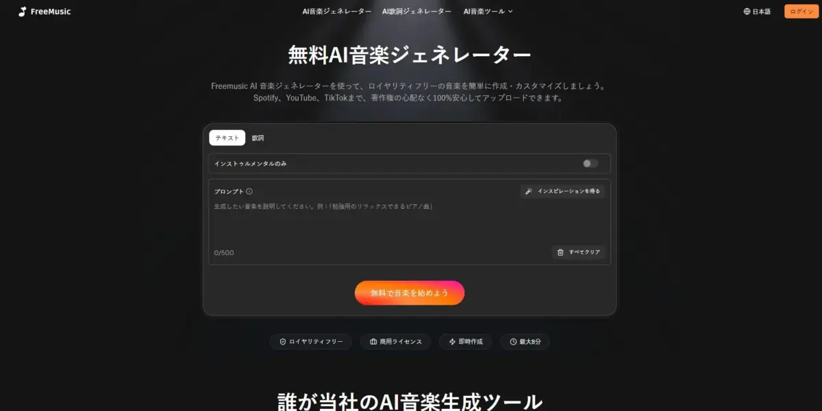 「Freemusic AI」は、深層学習技術を活用し、著作権フリーで商用利用可能なオリジナルAI音楽を瞬時に生成…