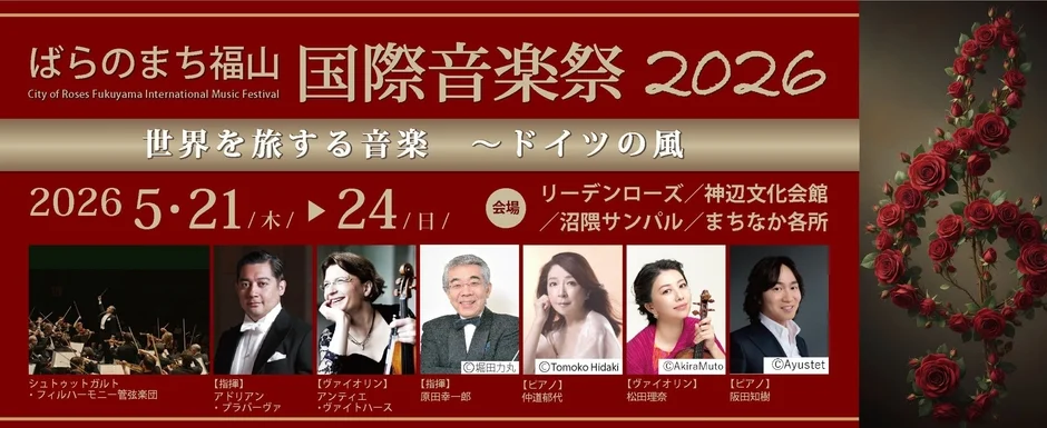 2026年5月21日から24日まで広島県福山市で開催される「ばらのまち福山国際音楽祭2026」のチケット販売が開…