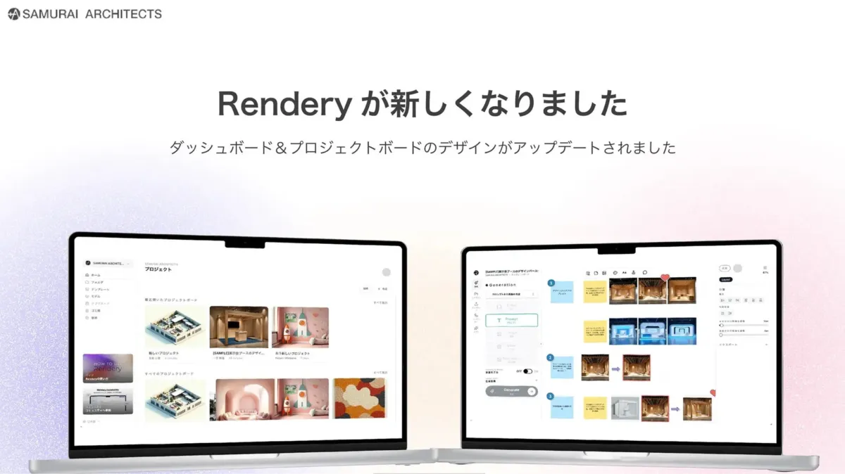 建築AIパースサービス「Rendery」が、ユーザーからのフィードバックを元にUIを全面的に刷新し、機能強化を…