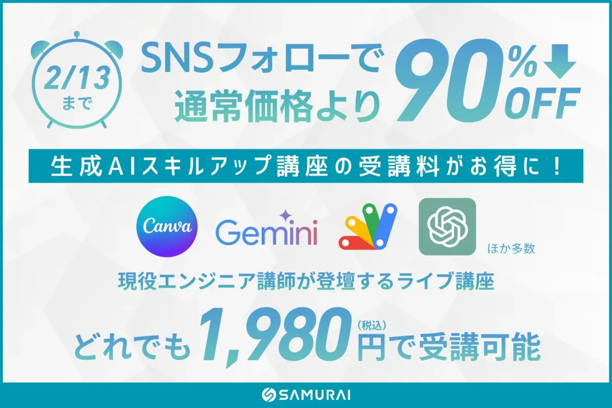 期間限定!生成AI人気講座を特別価格で提供 – SAMURAIが学習応援キャンペーンを実施
