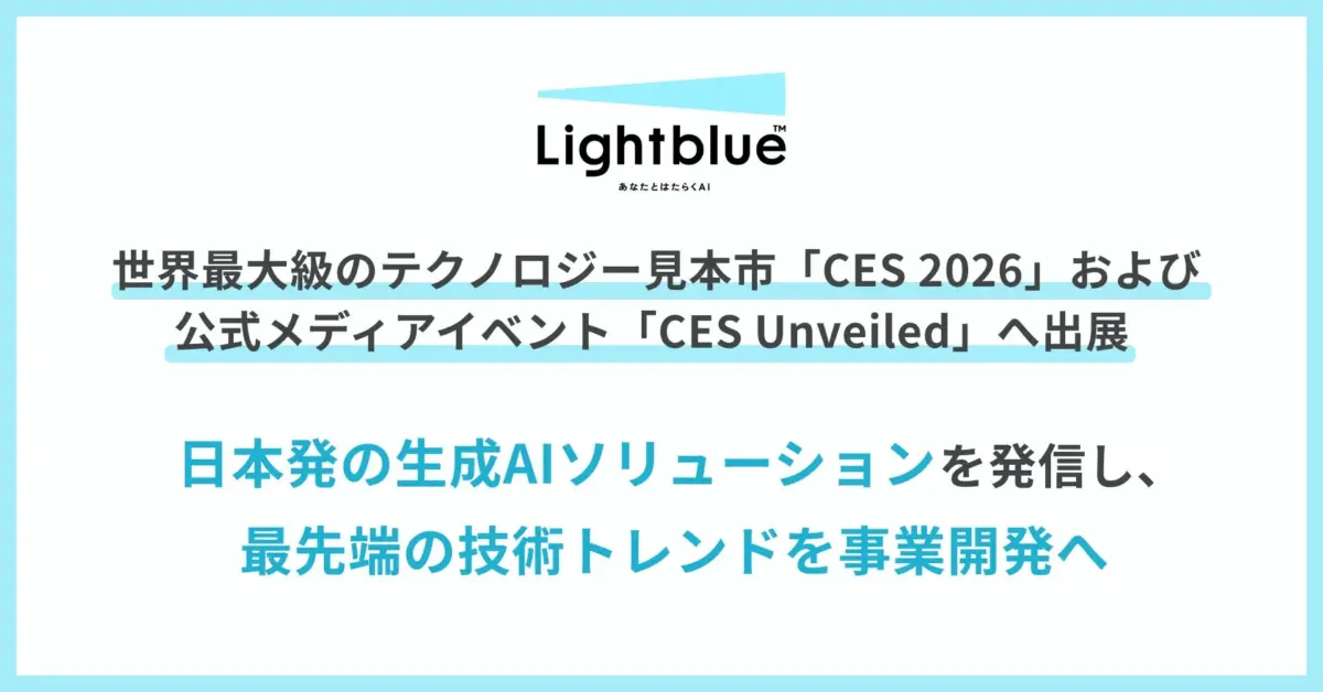 東京大学発のAIスタートアップ、株式会社Lightblueが、世界最大級のテクノロジー見本市「CES 2026」とその…