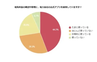 電力会社の公式アプリ利用状況調査:「たまに使う」が最多の約44%、電気代管理…