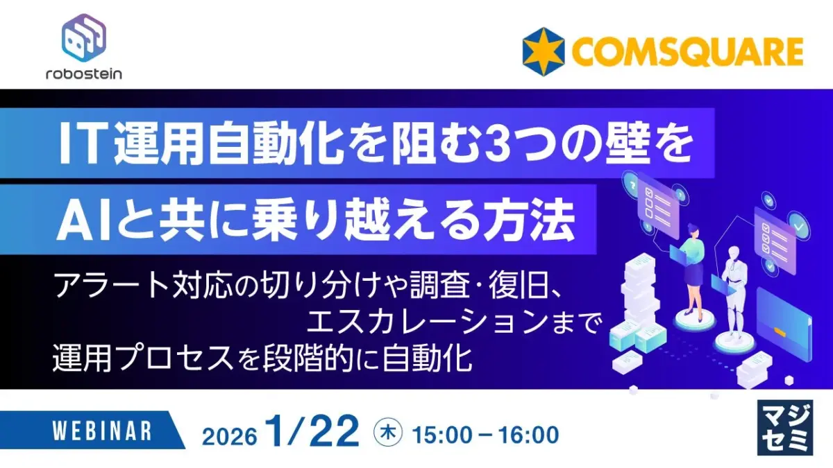 マジセミ株式会社は、IT運用自動化を阻む「ヒト・モノ・カネの壁」をAIと共に乗り越える方法をテーマにし…