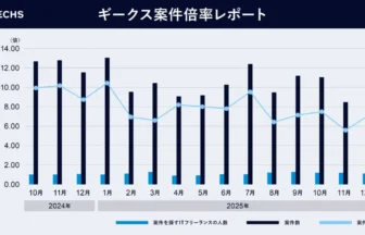 ギークス株式会社が発表した「ITフリーランス案件倍率レポート」によると、2025年10月から12月までの四半期累計案件倍率は6.7…