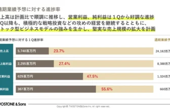 株式会社TWOSTONE&Sonsは、2026年8月期第1四半期決算を発表しました。積極的な戦略投資にもかかわらず、売上高は前年比38…