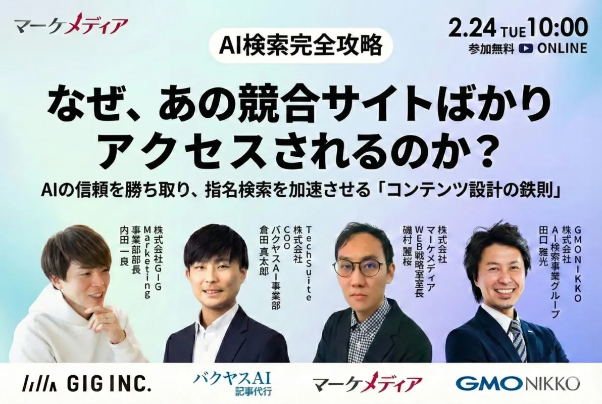「AI検索時代」を制覇する!競合に差をつける「コンテンツ設計の鉄則」無料ウェビナー開催