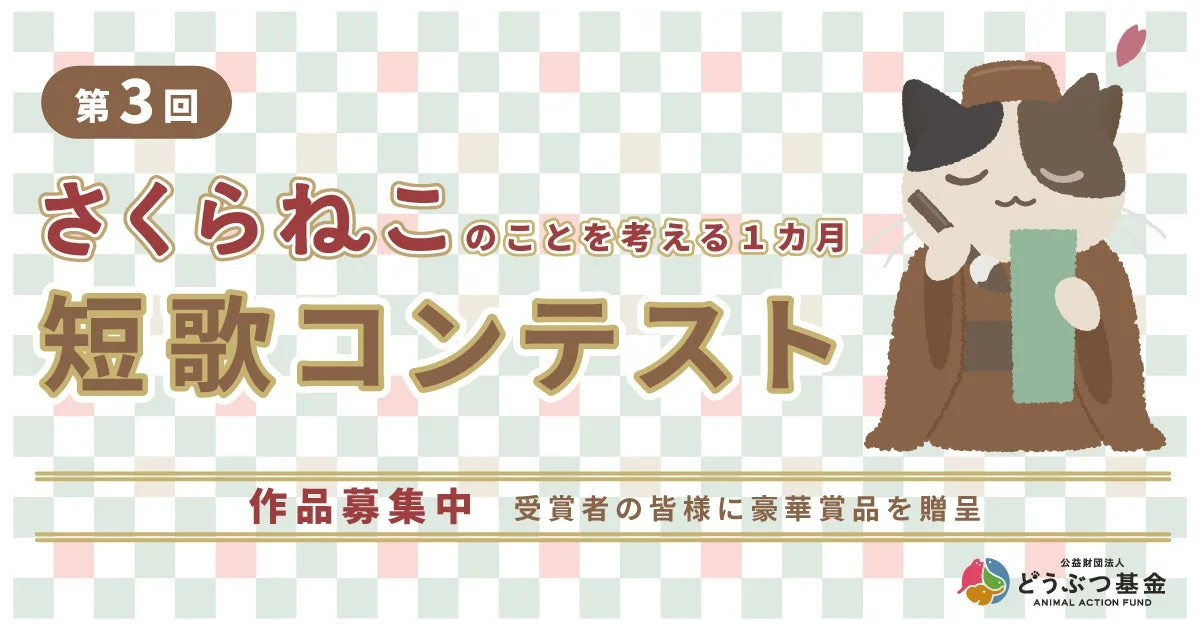 猫の殺処分ゼロを目指す公益財団法人どうぶつ基金が、「第3回 さくらねこ短歌コンテスト」を2026年1月15日…