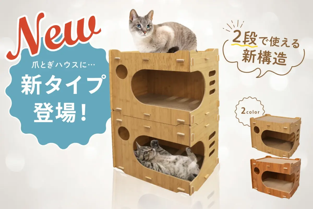 PetFun、猫用「爪とぎハウス」に新タイプ「スクエアB」を発売 – 2段重ね対応で多頭飼いや省スペースに貢献、期間限定15%OFFクーポンも