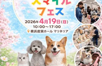 2026年4月19日に横浜産貿ホール マリネリアで開催される「わんにゃんスマイルフェス2026・春 in 横浜」は、入場無料で屋内開…