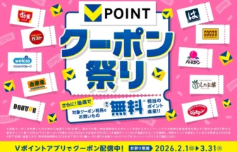 CCCMKホールディングスは、2026年2月1日より3月31日まで、Vポイントがお得に貯まる「クーポン祭り」を開催します。モバイルV…